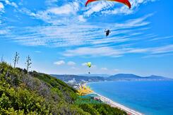 Characteristic are the colorful paragliders with the proud pilots, taking advantage of the ideal wind and hilltop, enjoying their hobbies, while giving a wonderful sight to many passersby.